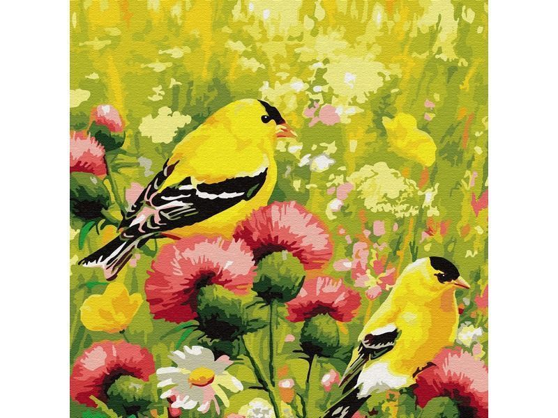 Используя кисти и краски, на холсте можно нарисовать птиц и яркий, летний луг с ромашками и клевером. Для такого творчества не требуются специальные художественные навыки. Нужно лишь следовать инструкции и время от времени сверяться с цветовой схемой рисунка.