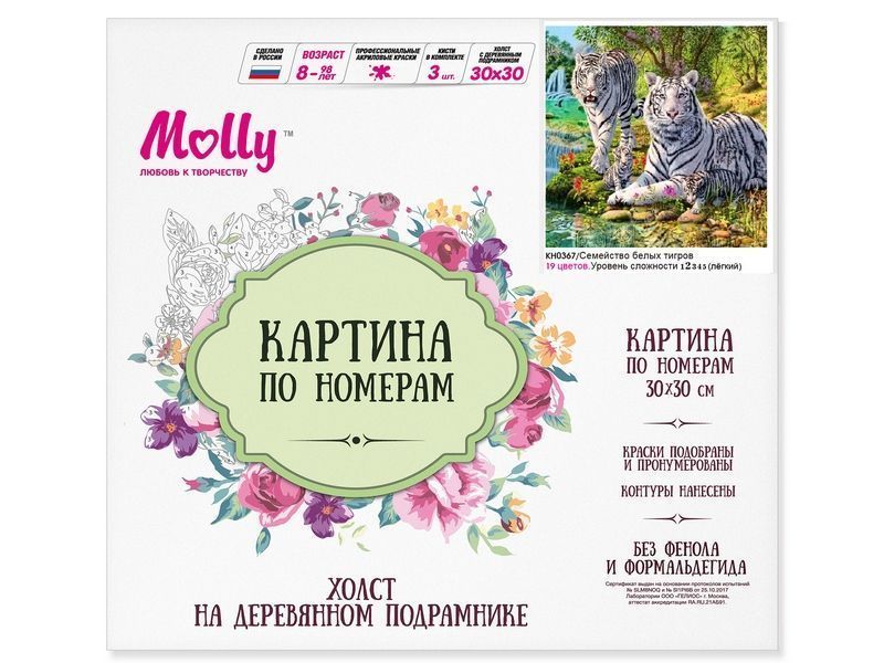 Картина по номерам 30х30 Семейство белых тигров (19 цветов)