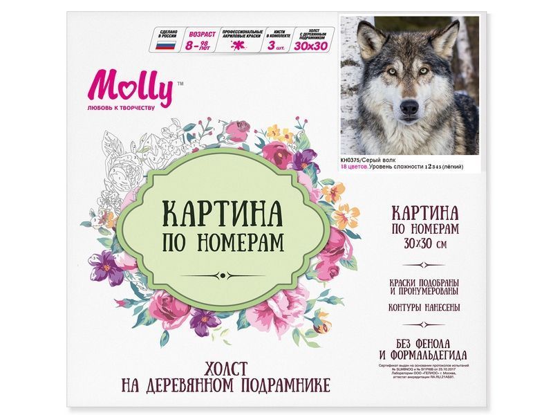 Картина по номерам 30х30 Серый волк (18 цветов)