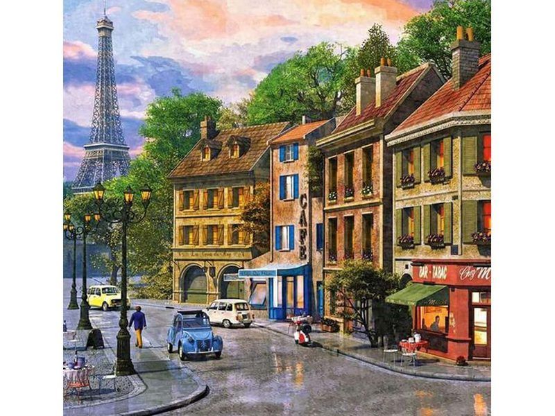 Используя кисти и краски, на холсте можно нарисовать картину с изображением старого Парижа. На заднем плане виднеется Эйфелева башня. В мокрых после дождя улицах отражается живописное небо. Для такого творчества не требуются специальные художественные навыки. Нужно лишь следовать инструкции и время от времени сверяться с цветовой схемой рисунка.
