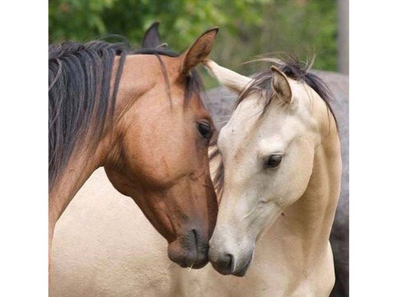 Используя кисти и краски, на холсте можно нарисовать умилительный портрет двух лошадей. Для такого творчества не требуются специальные художественные навыки. Нужно лишь следовать инструкции и время от времени сверяться с цветовой схемой рисунка.