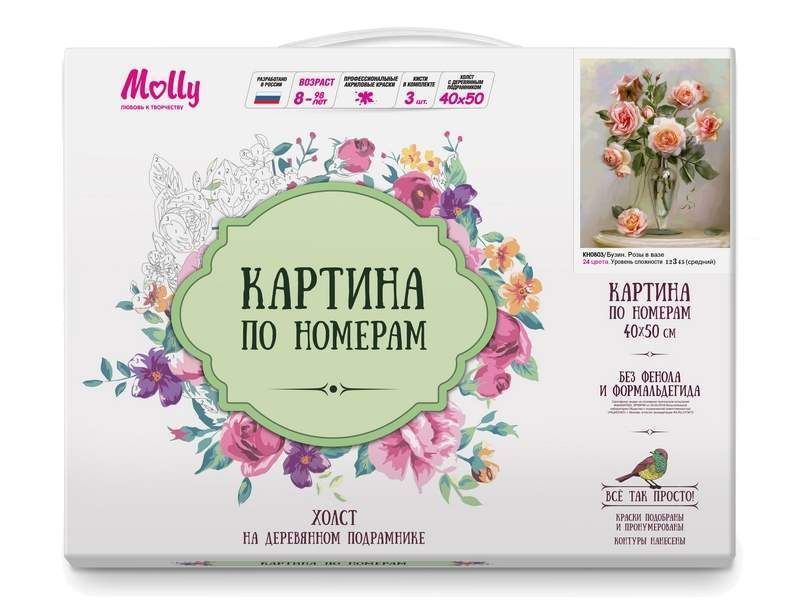Картина по номерам 40х50 БУЗИН. РОЗЫ В ВАЗЕ (24 цвета)