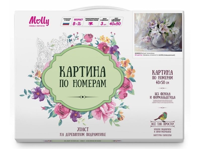 Картина по номерам 40х50 Белые тюльпаны (25 цветов)