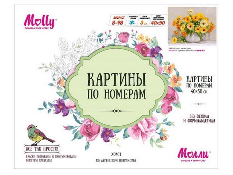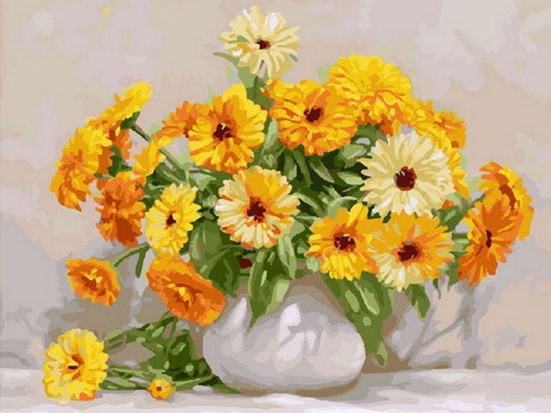 Картина по номерам 40х50 Бузин. Букет календулы (28 цветов)