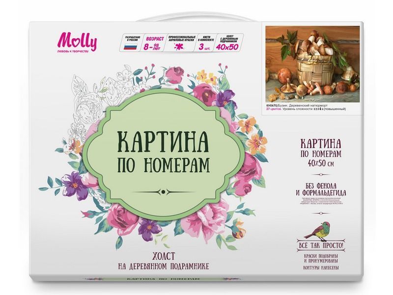 Используя кисти и краски, на холсте можно нарисовать картину Игоря Бузина "Деревенский натюрморт" - плетеная корзина, наполненная грибами. Для такого творчества не требуются специальные художественные навыки. Нужно лишь следовать инструкции и время от времени сверяться с цветовой схемой рисунка.