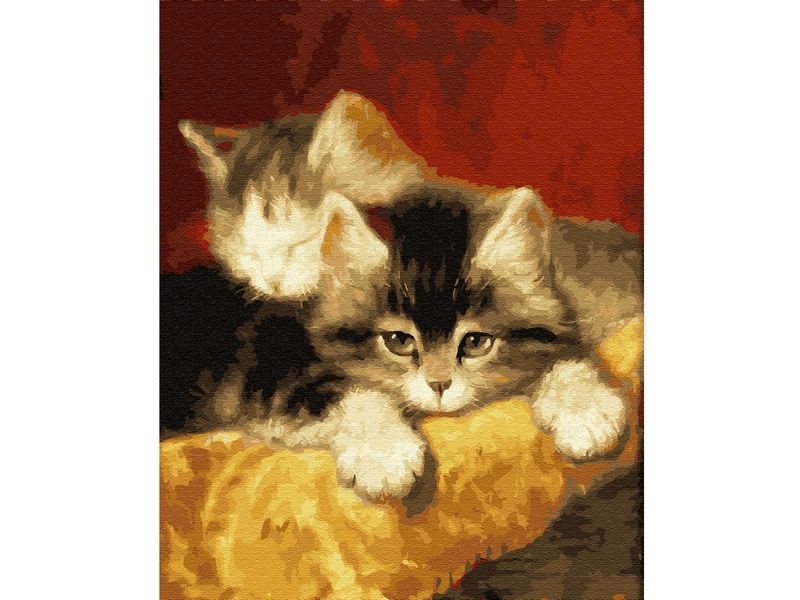 Используя кисти и краски, на холсте можно нарисовать двух милых пушистых котят в корзине. Для такого творчества не требуются специальные художественные навыки. Нужно лишь следовать инструкции и время от времени сверяться с цветовой схемой рисунка.