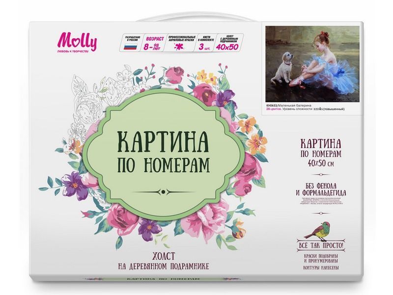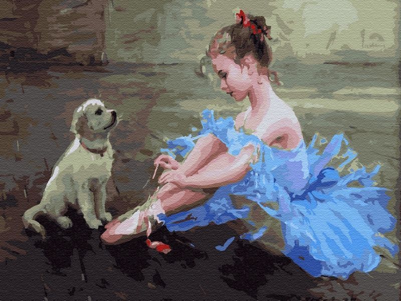 Используя кисти и краски, на холсте можно нарисовать юную балерину в голубом платье с яркой лентой в волосах. Балетный класс закончился, самое время снять пуанты и поиграть с любимым щенком. Для такого творчества не требуются специальные художественные навыки. Нужно лишь следовать инструкции и время от времени сверяться с цветовой схемой рисунка.