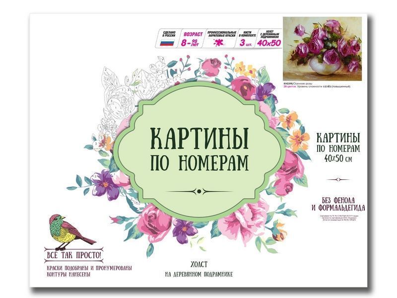 Картина по номерам 40х50 Осенние розы (28 цветов)
