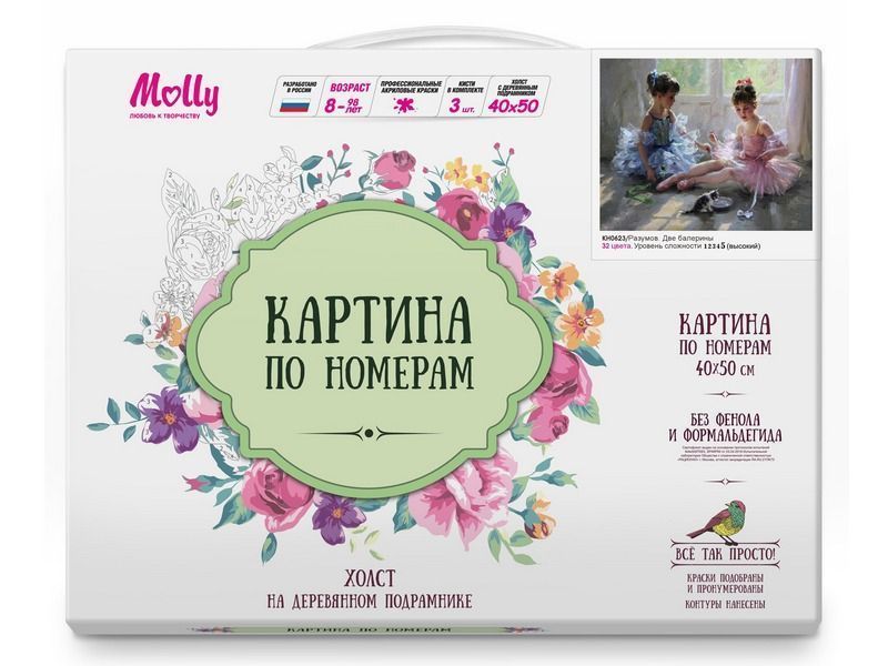 Используя кисти и краски, на холсте можно нарисовать картину Константина Разумова "Две балерины" - двух юных балерин, отдыхающие после балетного класса. Для такого творчества не требуются специальные художественные навыки. Нужно лишь следовать инструкции и время от времени сверяться с цветовой схемой рисунка.