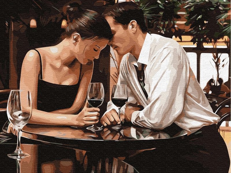 Используя кисти и краски, на холсте можно нарисовать картину, на которой запечатлено романтическое свидание. Мужчина и женщина сидят за столиком в кафе, нежно прикасаясь друг к другу. На картине удалось очень точно воспроизвести момент тепла и нежности: закрытые глаза, склоненные друг к другу головы. Для такого творчества не требуются специальные художественные навыки. Нужно лишь следовать инструкции и время от времени сверяться с цветовой схемой рисунка.