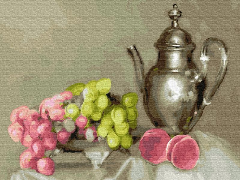 Картина по номерам на дереве 40х50 БУЗИН. НАТЮРМОРТ С ВИНОРАДОМ (28 цветов)
