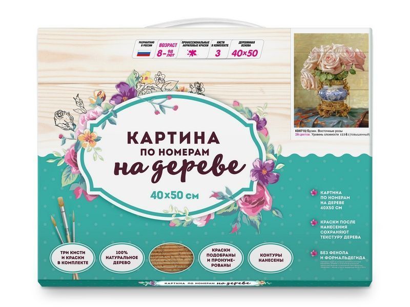 Картина по номерам на дереве 40х50 БУЗИН. ВОСТОЧНЫЕ РОЗЫ (28 цветов)
