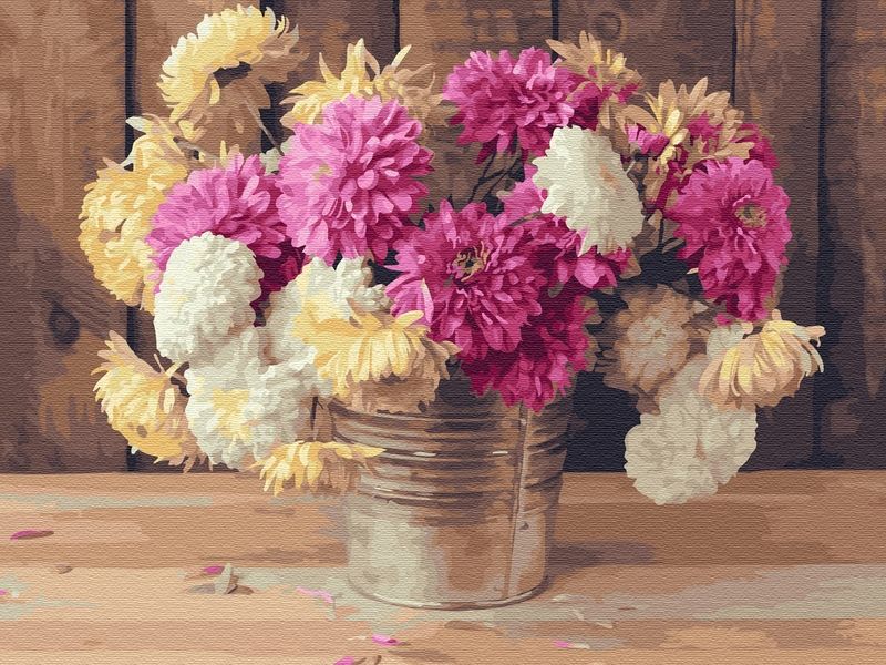 Картина по номерам на дереве 40х50 ДАЧНЫЙ БУКЕТ (28 цветов)