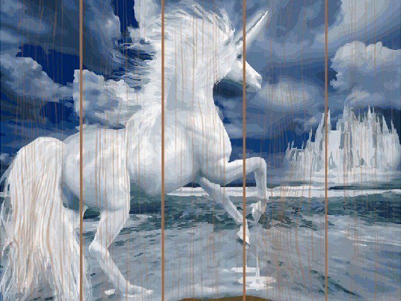 Картина по номерам на дереве 40х50 Единорог и замок-призрак (26 красок)