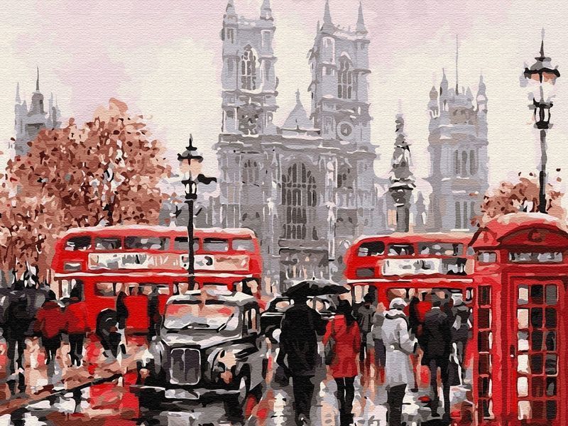 Картина по номерам на дереве 40х50 ЛОНДОНСКИЙ ТРАНСПОРТ (28 цветов)