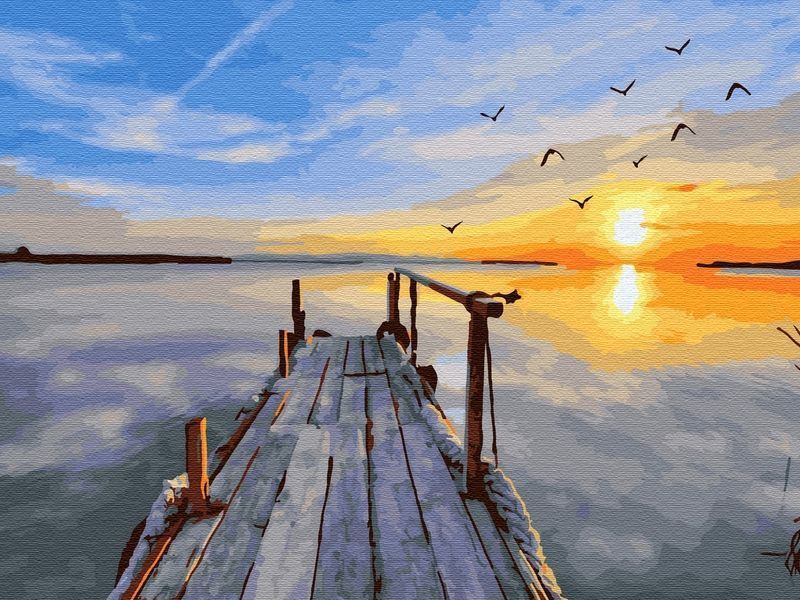 Картина по номерам на дереве 40х50 ОДИНОКАЯ ПРИСТАНЬ (29 цветов)