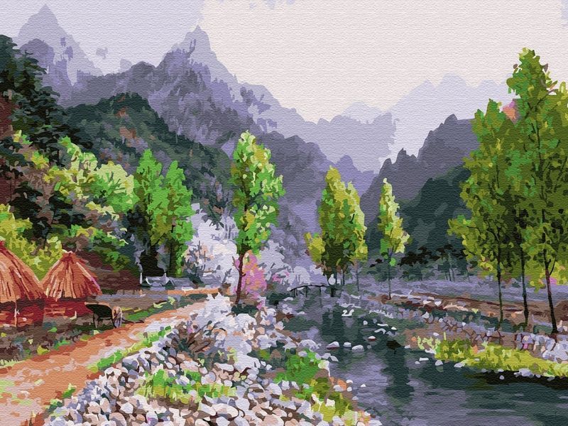Картина по номерам на дереве 40х50 ВЕСНА В ГОРАХ (27 цветов)