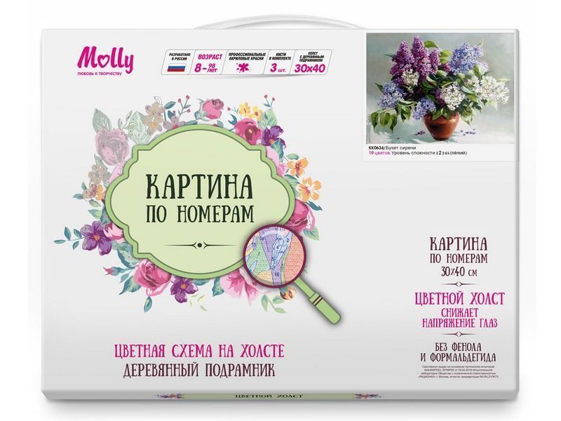 Картина по номерам с цветной схемой на холсте 30х40 Букет сирени (19 цветов)