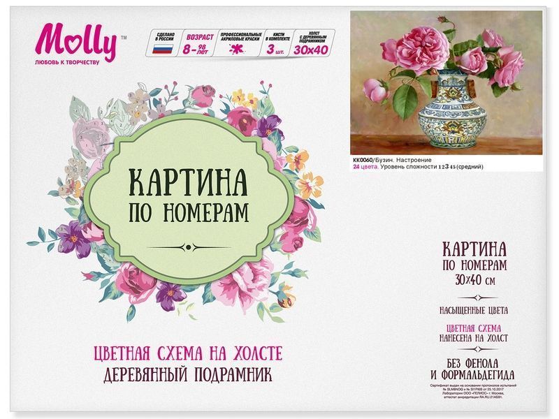 Используя кисти и краски, на холсте можно нарисовать картину Игоря Бузина "Настроение" - роскошный букет розовых роз в вазе. Для такого творчества не требуются специальные художественные навыки. Нужно лишь следовать инструкции и время от времени сверяться с цветовой схемой рисунка.
