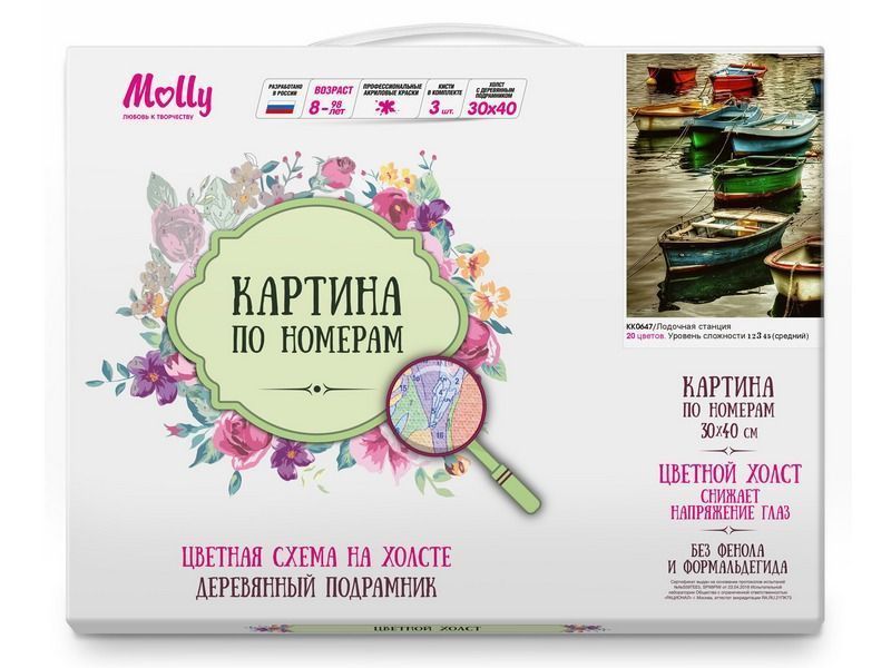 Используя кисти и краски, на холсте можно нарисовать лодочную станцию. На станции пришвартованы разноцветные лодки. Для такого творчества не требуются специальные художественные навыки. Нужно лишь следовать инструкции и время от времени сверяться с цветовой схемой рисунка.