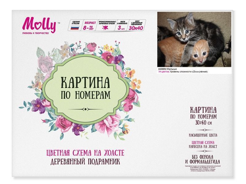 Картина по номерам с цветной схемой на холсте 30х40 МАЛЫШИ (19 цветов)