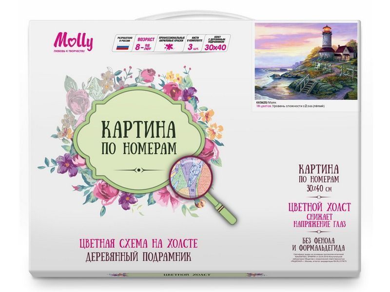 Картина по номерам с цветной схемой на холсте 30х40 Маяк (18 цветов)