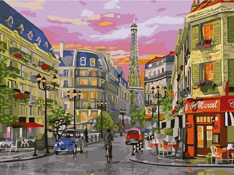Используя кисти и краски, на холсте можно нарисовать уютную, парижскую улицу. Для такого творчества не требуются специальные художественные навыки. Нужно лишь следовать инструкции и время от времени сверяться с цветовой схемой рисунка.