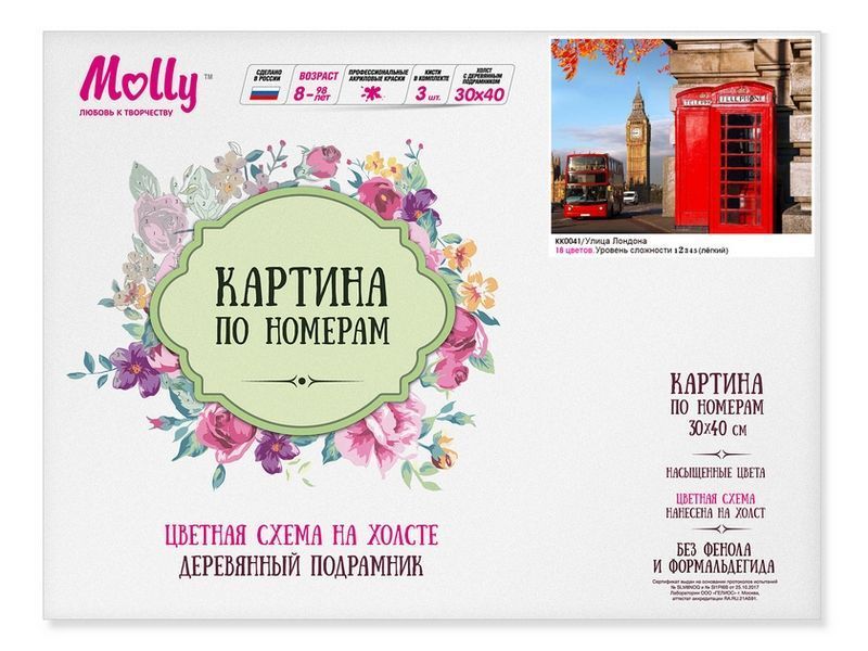 Картина по номерам с цветной схемой на холсте (30х40) УЛИЦЫ ЛОНДОНА (18 цветов)