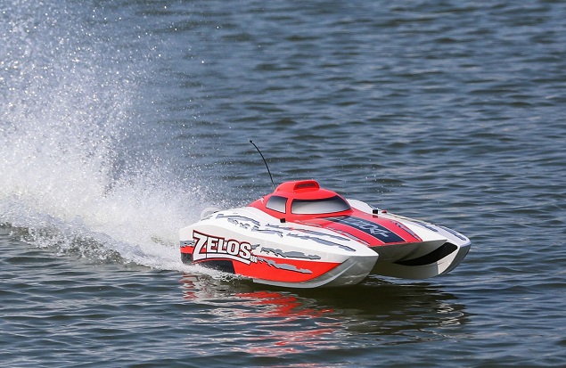 Мчитесь как никогда ранее с катамараном Zelos 48" G. Высокоскоростной катамаран оснащен бензиновым двигателем Dynamite Zenoah G300PUM 30 см3, способным развивать скорость более 80 км/ч. Когда противники поймут, кто их обогнал, они уже будут в хвосте. Двигатель Dynamite Zenoah оснащен системой пуска EZ, которая облегчает эксплуатацию стартера по сравнению с другими моделями. Новый дизайн корпуса похож на спортивную классическую модель Zelos 36. Новая цветовая схема является завершающим штрихом и обеспечивает впечатляющий вид как на воде, так и на полке.