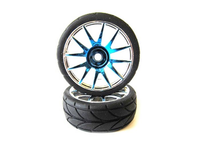 Колеса с резиновыми покрышками, голубой хром (82827PB+82828), 2шт.