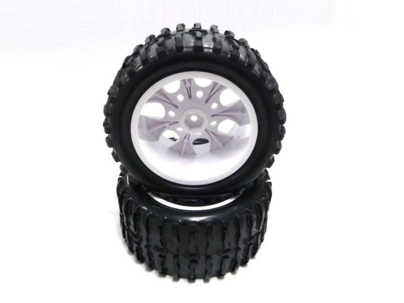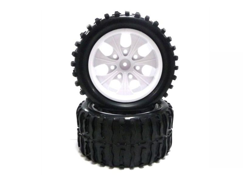 Колеса в сборе (шины Himoto 08009N + диск 08044PB) для радиоуправляемых монстров Himoto масштаба 1/10.