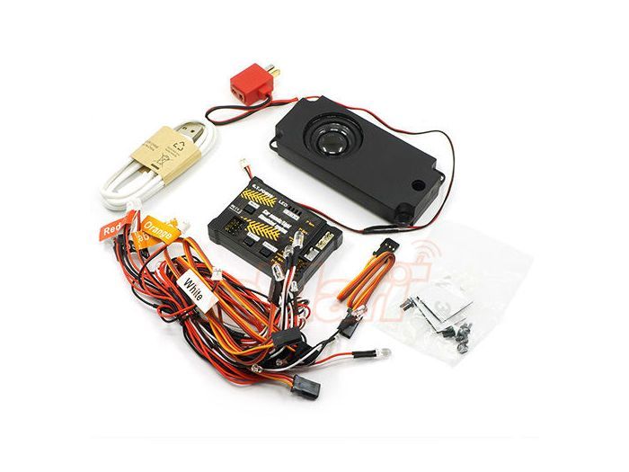 Комплект 2 в 1 - свет и звук - необходимые для вашего автомобиля масштаба 1/10. Огромное разнообразие встроенных звуков для модели, чтобы выбрать, какой из них вам подходит. 6 пар светодиодов, чтобы сделать реалистичными световые эффекты вашего автомобиля.
