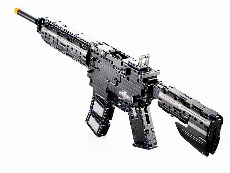Конструктор Cada Штурмовая винтовка M4A1 - копия американского лёгкого самозарядного карабина M1 времен Второй мировой войны. M4A1 отличается возможностью стрельбы непрерывными очередями. Потрясающий конструктор-автомат, из которого можно стрелять! Запустив функции «резиновая лента», можно непрерывно запускать до 6 резинок.