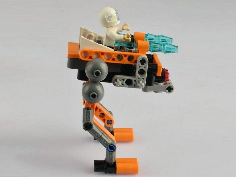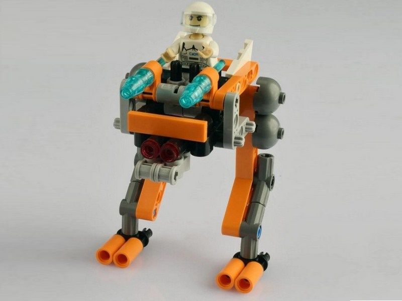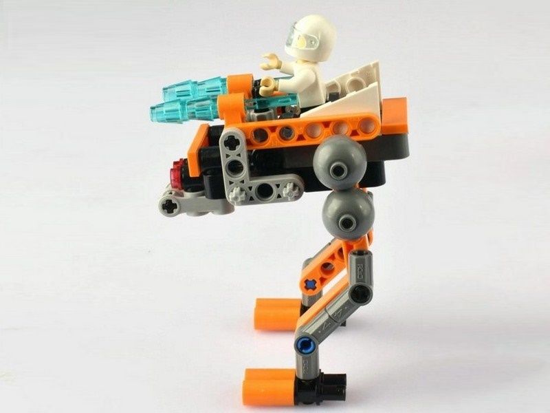 Количество деталей в этом наборе –103. В собранном виде конструктор превращается в боевой космический дрон – машину, которая способна смело шагать по поверхности другой планеты, высматривать противника и отстреливаться снарядами. На вершине дрона, за пультом управления, сидит оператор этого космического вездехода. Его фигурку вы найдёте в коробке вместе с конструктором.