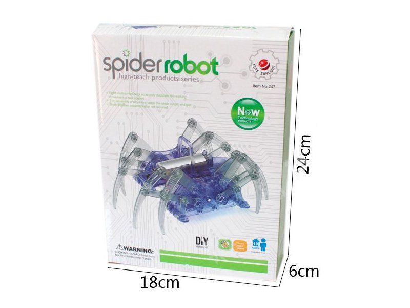 Развивающий конструктор Cute Sunlight для самостоятельной сборки, из деталей которого можно собрать робота-паука. Восемь ног точно дублируют движение реального паука. Набор предусматривает два варианта сборки, которые изменяют длину шага и походку паука.