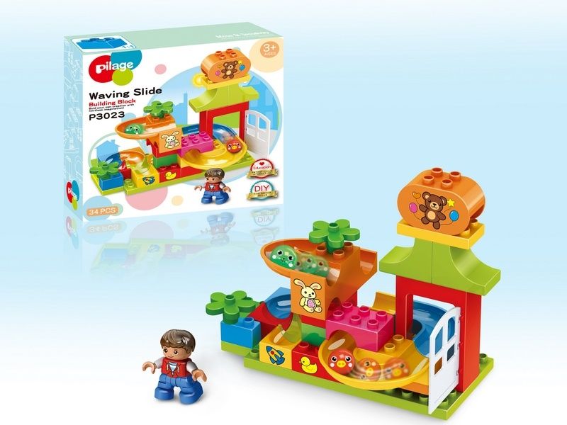 Детский конструктор Pilage Детские игрушки включает в себя 34 пластиковых детали. После сборки ребенок имеет возможность запускать разноцветные шарики, которые скатываются по желобкам с разной скоростью. Ребенок будет часами наблюдать как шарики путешествуют через лабиринты, построенные своими руками. Для большего интереса в набор включена мини-фигурка человечка.
