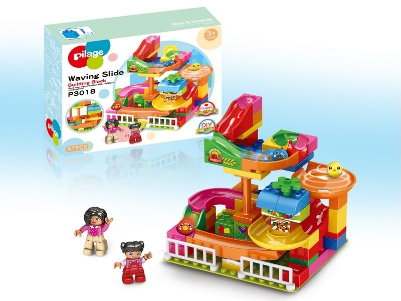 Конструктор Pilage Овощной магазин (67 деталей), лабиринт с шариками и воронками