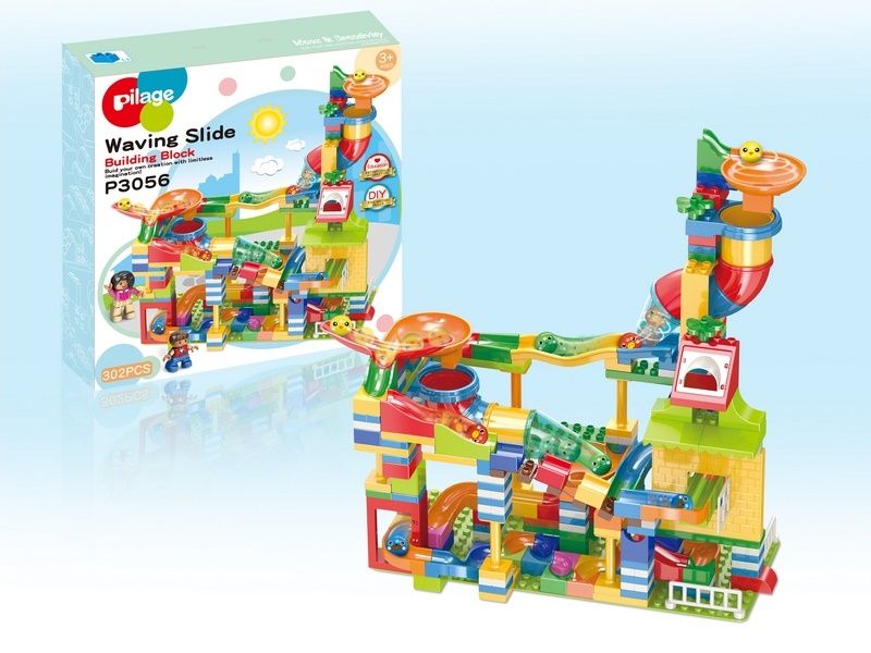 Детский конструктор Pilage Скоростная труба включает в себя 302 пластиковых детали. После сборки ребенок имеет возможность запускать по трубе посетителей: разноцветные шарики скатываются по желобкам с разной скоростью. Ребенок будет часами наблюдать как шарики путешествуют через лабиринты, построенные своими руками. Для большего интереса в набор включены мини-фигурки человечков.