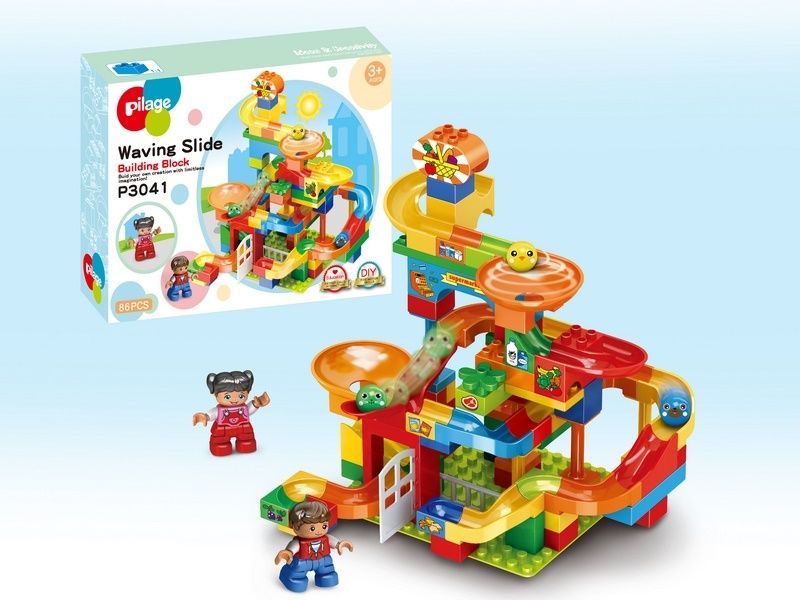 Детский конструктор Pilage Супермаркет включает в себя 86 пластиковых деталей. После сборки ребенок имеет возможность запускать в магазин посетителей: разноцветные шарики скатываются по желобкам с разной скоростью. Ребенок будет часами наблюдать как шарики путешествуют через лабиринты, построенные своими руками. Для большего интереса в набор включены мини-фигурки человечков.