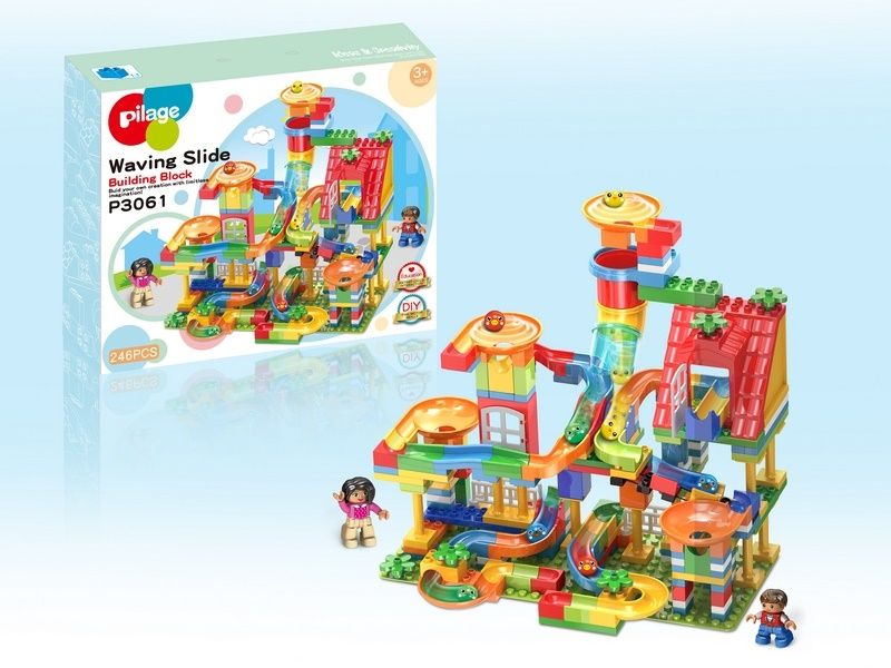 Детский конструктор Pilage Веселые тарелки включает в себя 246 пластиковых детали. После сборки ребенок имеет возможность запускать по лабиринту посетителей: разноцветные шарики скатываются по желобкам с разной скоростью. Ребенок будет часами наблюдать как шарики путешествуют через лабиринты, построенные своими руками. Для большего интереса в набор включены мини-фигурки человечков.