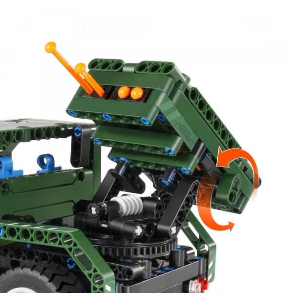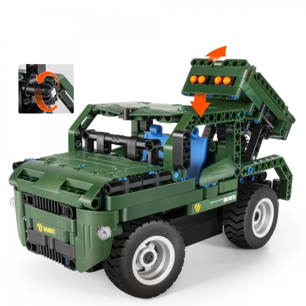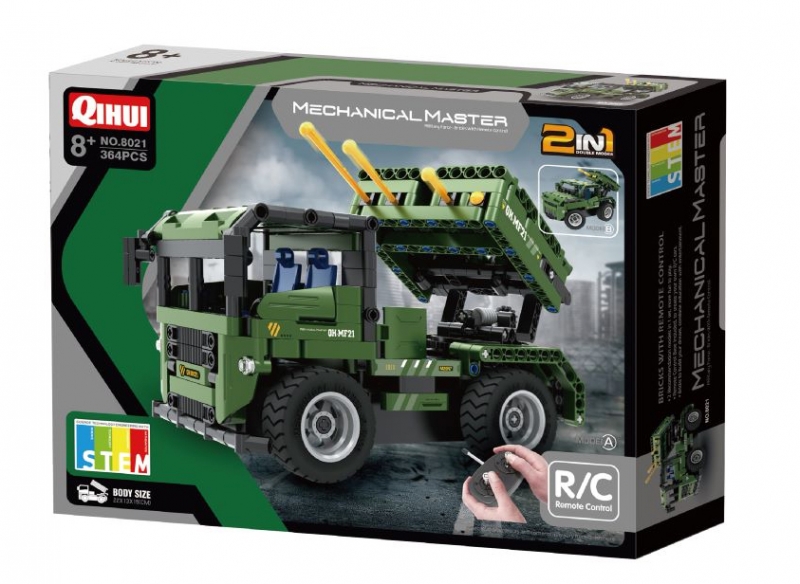 Конструктор военная машина с ракетами QiHui 364 детали (2в1, пульт) - QH8021 - это электромеханический конструктор из 364 элементов. Особенность конструктора - полностью модульная схема. Благодаря этому из конструктора возможно собрать любую машину и подключить модули двигателей на любые колеса, гусеницы и прочие элементы.