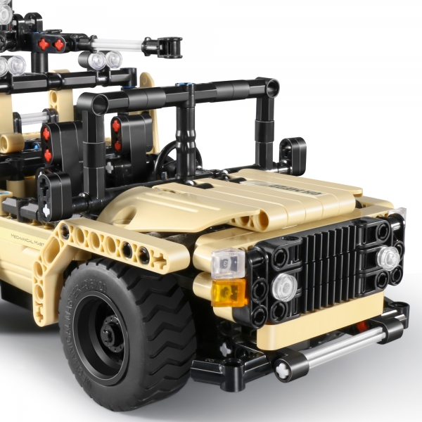 Конструктор изготовлен из высококачественной пластмассы. Для его сборки не нужны какие-либо дополнительные инструменты. Из набора можно собрать не только джип, но и множество других не менее интересных видов техники, которые сможет придумать ребенок.