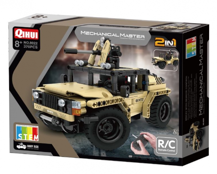 Конструктор военный джип QiHui 370 деталей (2в1, пульт) - QH8022 - это электромеханический конструктор из 370 деталей. Особенность конструктора - полностью модульная схема. Благодаря этому из конструктора возможно собрать любую машину и подключить модули двигателей на любые колеса, гусеницы и прочие элементы.