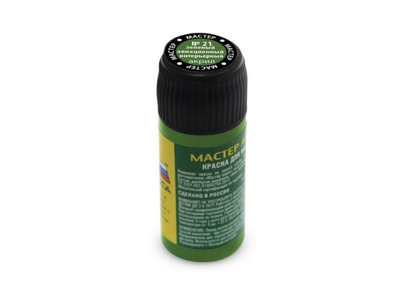 Краска ZVEZDA МАСТЕР-АКРИЛ акриловая, зеленая авиа-интерьер, 12 мл