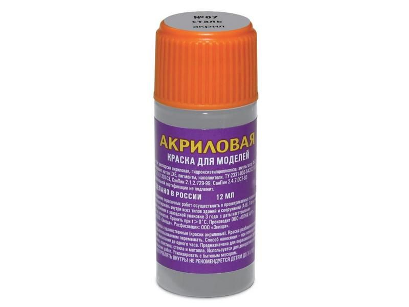 Краска ZVEZDA акриловая, металлик "сталь", 12 мл
