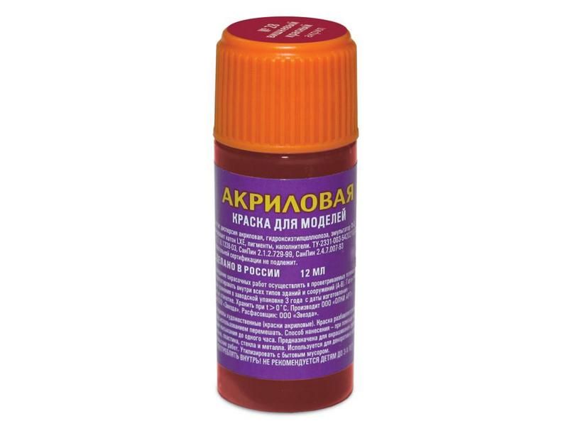 Акриловая краска на водной основе для сборных моделей и других увлечений и хобби. Краска готова для работы с ней. Краска разбавляется водой. Подходит для окраски моделей из пластика, металла, дерева, бумаги с помощью кисти.