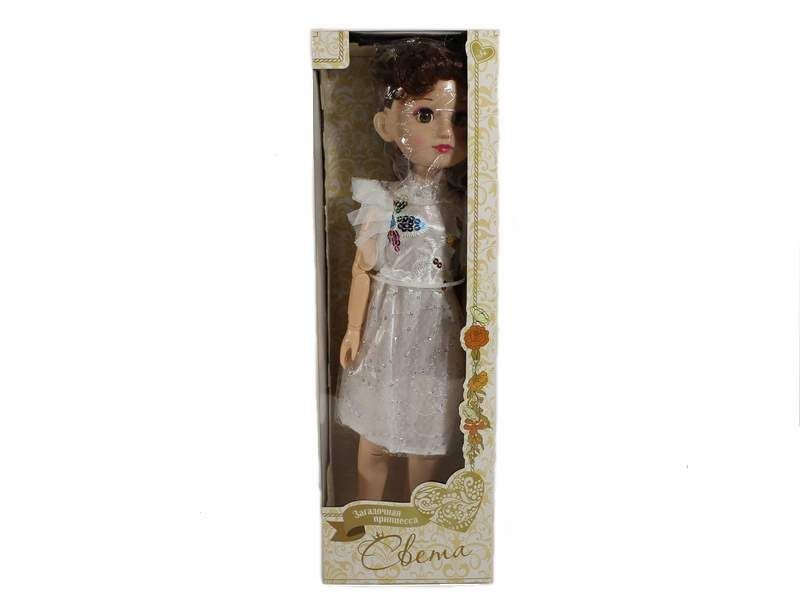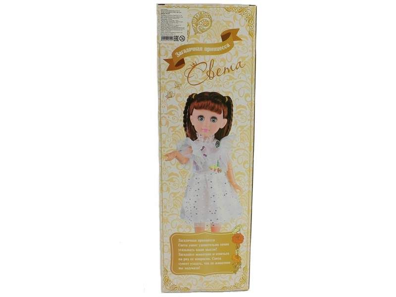 Интерактивная кукла - загадочная принцесса Света - станет любимой подружкой девочки. Кукла одета в красивое нарядное платье и умеет разговаривать. Волосы заплетены в косички, но при желании их можно расчесывать и придумывать новые прически. У Светы подвижны руки и ноги.