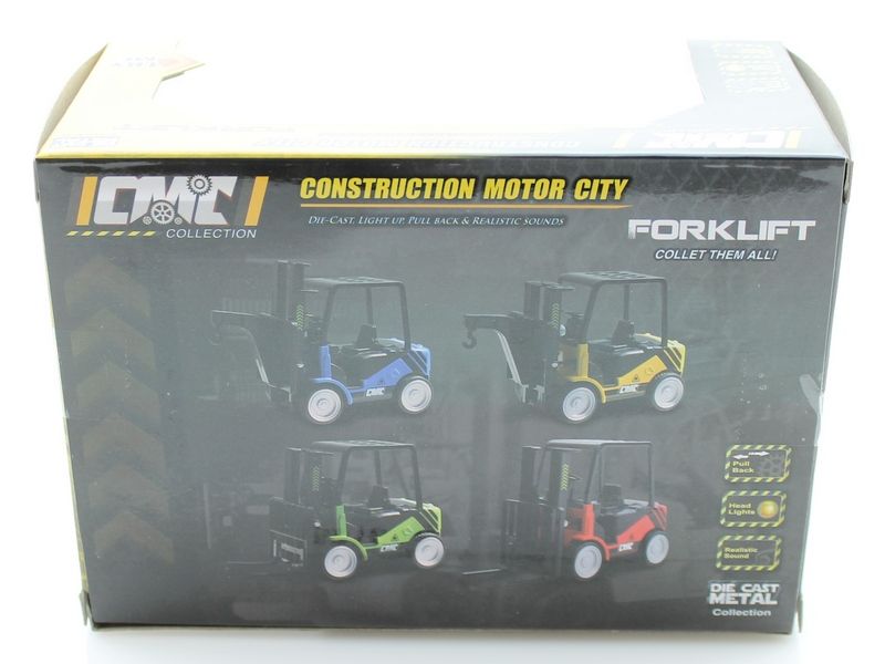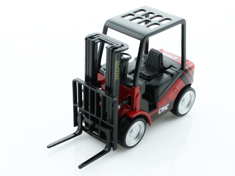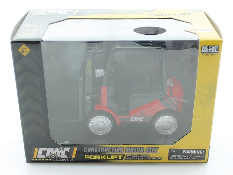 Металлическая модель вилочного погрузчика с инерционным механизмом. У машинки крутятся колеса и она способна перевозить небольшие грузы на любые расстояния. Модель оснащена световыми и звуковыми эффектами.