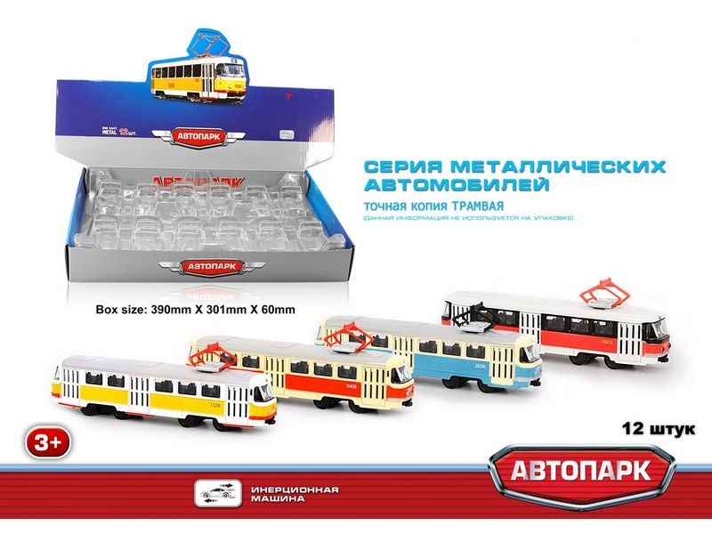 Машина АВТОПАРК 1:54 Трамвай 6551 в асс. инерция (1/12шт.) б/к