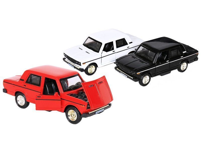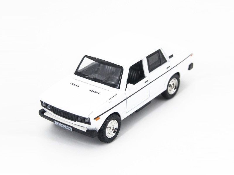 масштаб: 1/32 размер: 13 см материал: металл цвет: в ассортименте двенадцать машинок Лада 2106 (цена указана за одну машинку)